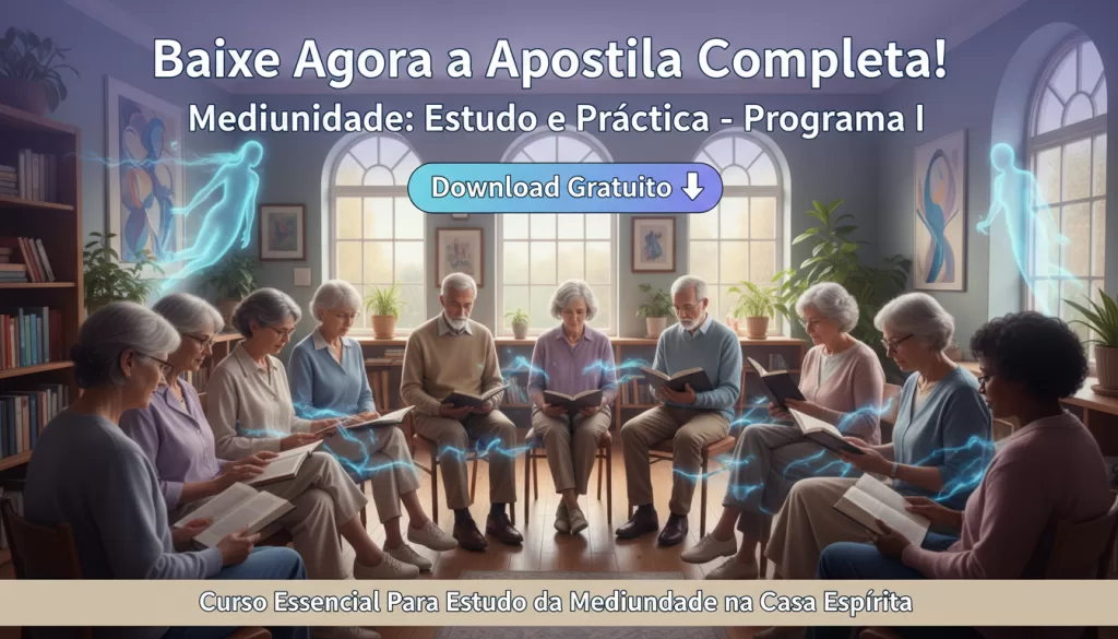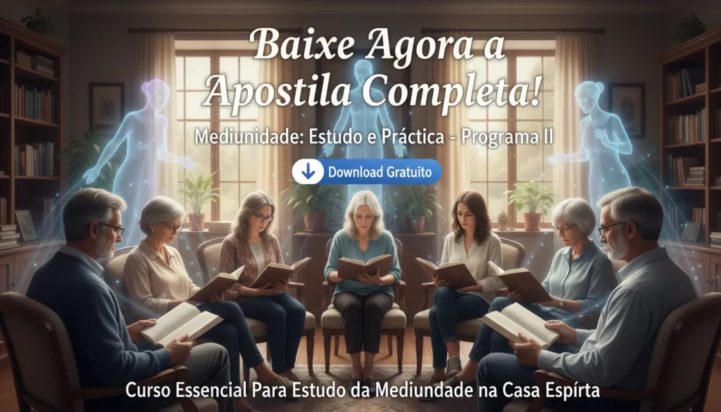 Abaixo você encontra os acessos para baixar o material didático oficial do Curso de Mediunidade 2026. Cada apostila foi preparada para acompanhar as aulas presenciais, com resumos, exercícios e referências das obras estudadas.